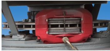 驅(qū)動裝置上安裝了液壓制動(ABS)裝置,其采用超越離合器結(jié)構(gòu),可使整個液壓系統(tǒng)在正常工作運轉(zhuǎn)時處于不工作狀態(tài),從而減少液壓系統(tǒng)機械磨損,具有使用壽命長、安全可靠性高、制動性能強等優(yōu)點(如圖 1-3 所示)。